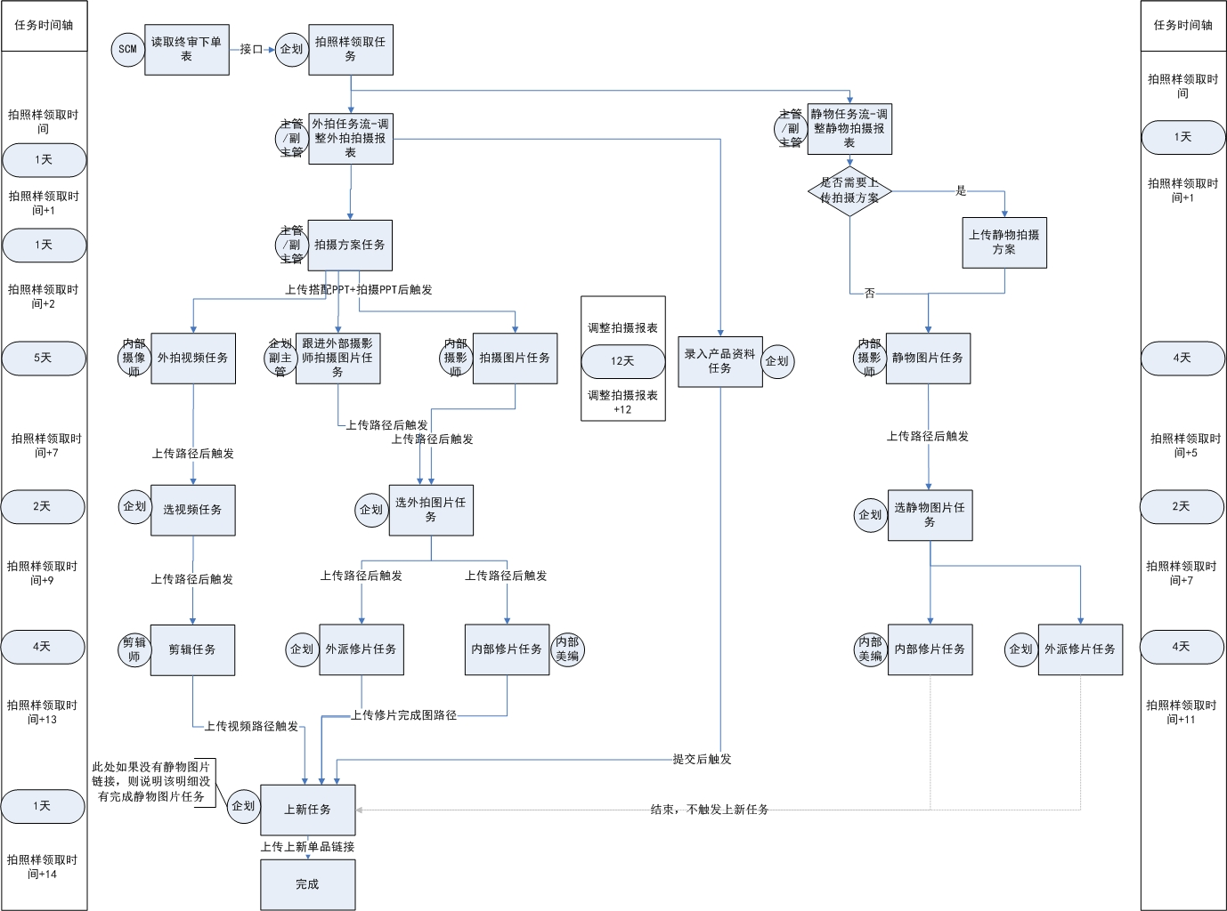 目录 搜索 EOP绑定钉钉帮助中心文档模板上新管理配置管理品类属性模板配置人员配置设计师绑定企划任务管理拍照样领取拍摄报表生成拍摄方案任务外拍视频任务外拍图片任务静物图片任务选片任务选视频任务修片任务剪辑任务录入产品资料任务上新任务资料管理拍摄报表上新静物报表上新外拍报表上新报表任务燃尽图单独任务开发上新常见问题解答唯品会库存token过期处理返单管理返单预警快捷返单特殊返单返单记录EOP支付宝账号应用创建门店经营看板线下门店销售报表线下门店经营看板固定费用导入变动费用明细目标完成率门店金额调整特殊固定费用,IT,财务,董事会工资由品牌和门店共同承担操作手册chicpark开款经营看板改动操作说明人力资源部门考核班委考核唯品会对账唯品会账单列表唯品会账单详情 暂无相关搜索结果! 本文档使用 MinDoc 发布 上新管理 下图是整个上新管理的流程图上新管理分为2个任务流程外拍任务和静物任务外拍任务和静物任务都完成才会算整个上新流程的完成文档更新时间: 2024-03-18 11:53 作者:刘萍