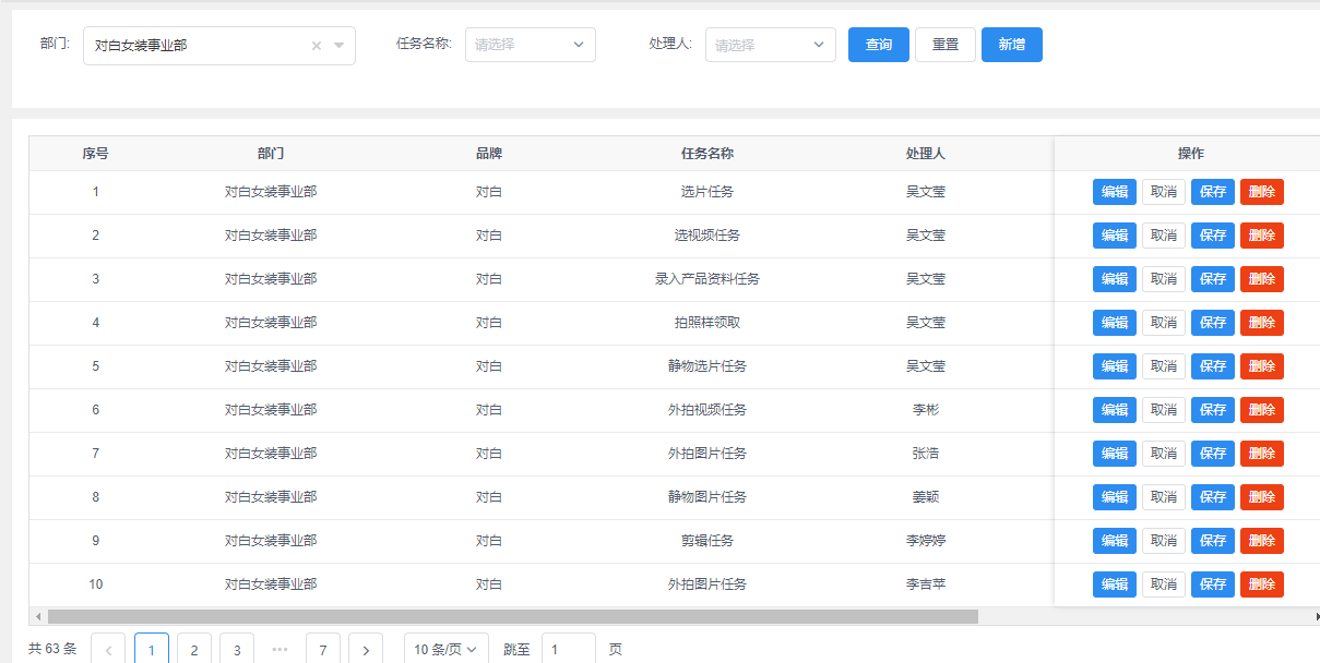 调整拍摄报表和拍摄方案任务配置各部门的产品主管/副主管,