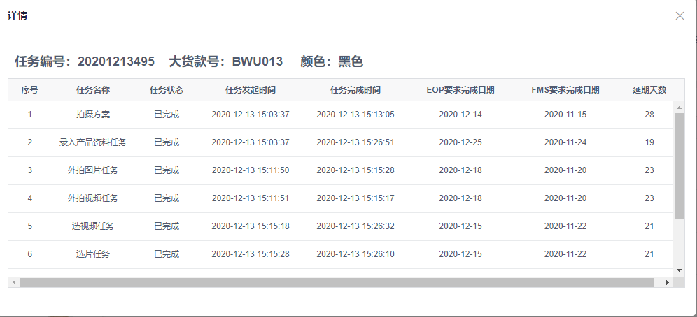 详情的延期天数:fms的要求完成时间和实际完成时间的差值