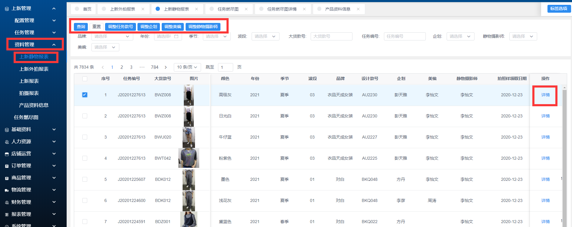 调整美编后,选择的明细款号会到对应的调整后人员任务中