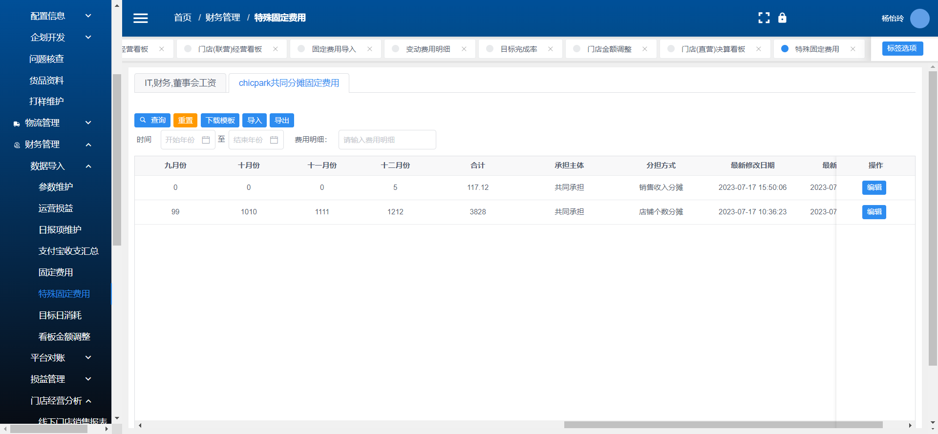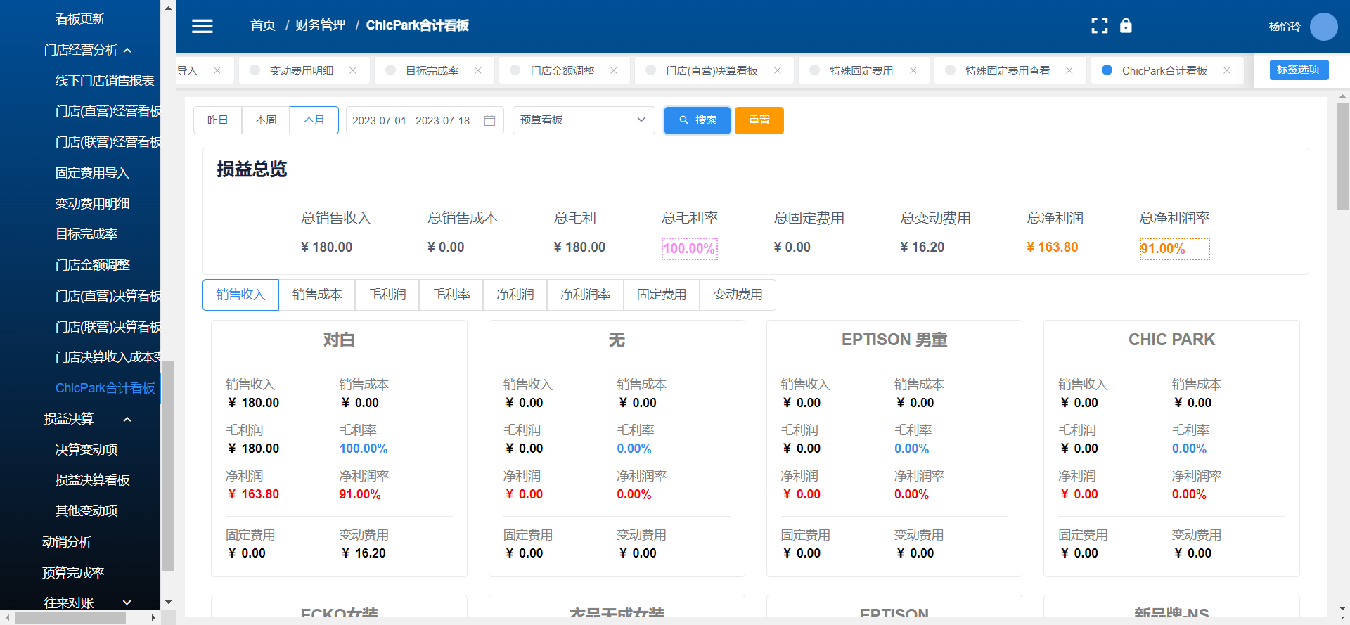 改动点:当部门=chicpark事业部,品牌为chicpark的时候,不在经营看板生效,只在决算看板生效