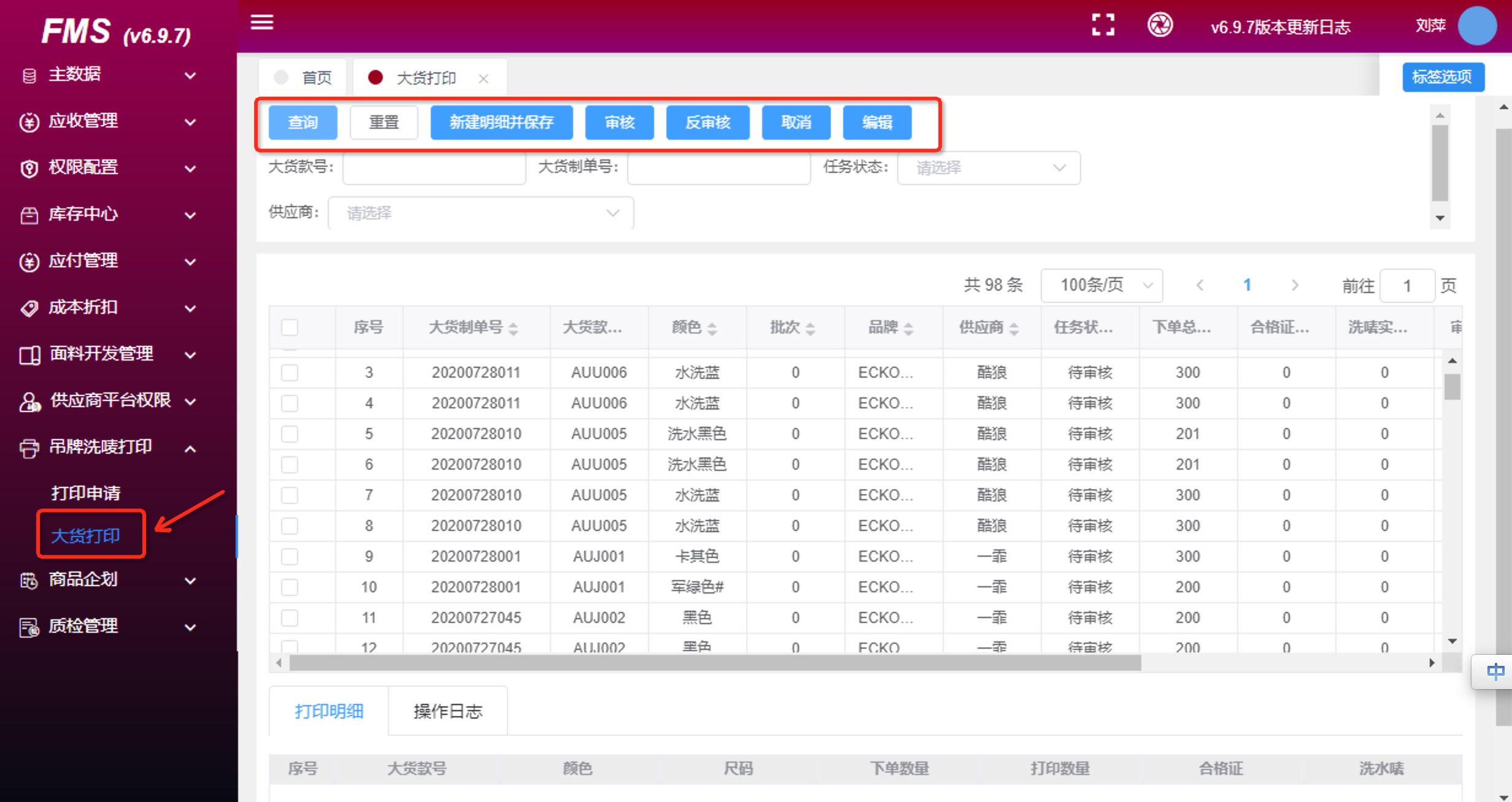选中一条主单,点击修改按钮,可以新增明细,清空,并保存;其中保存动作会触发去scm取最新数据