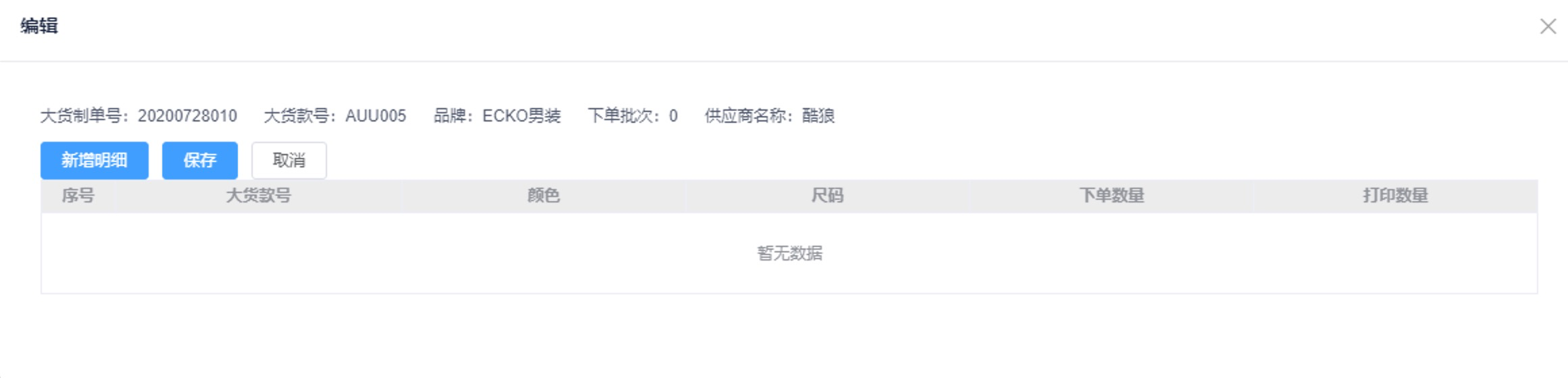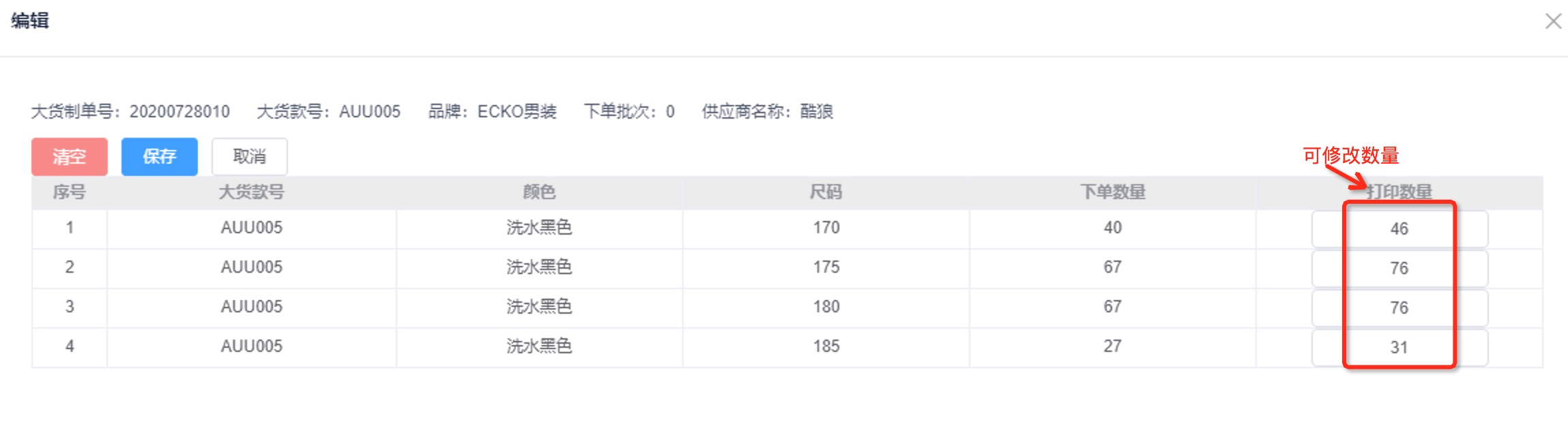 - 修改: 可以新增明细,清空,并保存;其中保存动作会触发去scm取最新数据