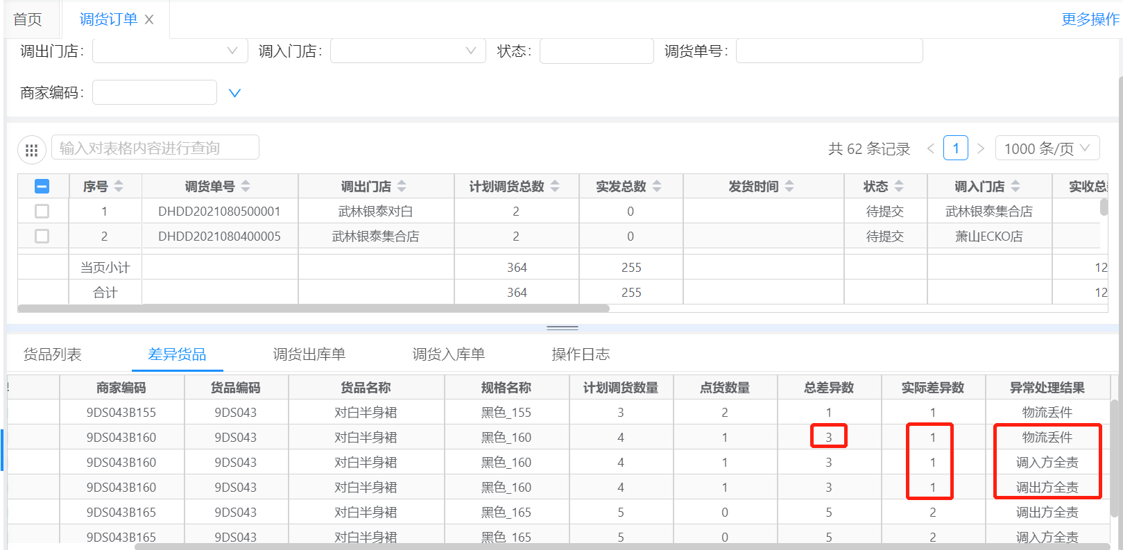 2、实发总数:调出门店实发的数量。 如后续收货差异,则处理差异完成后,会根据判定的责任,对应变更为最终实发数量。