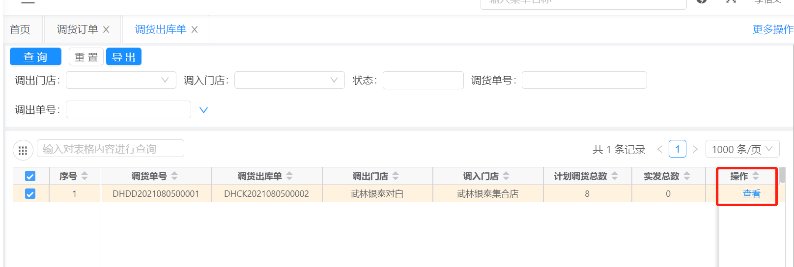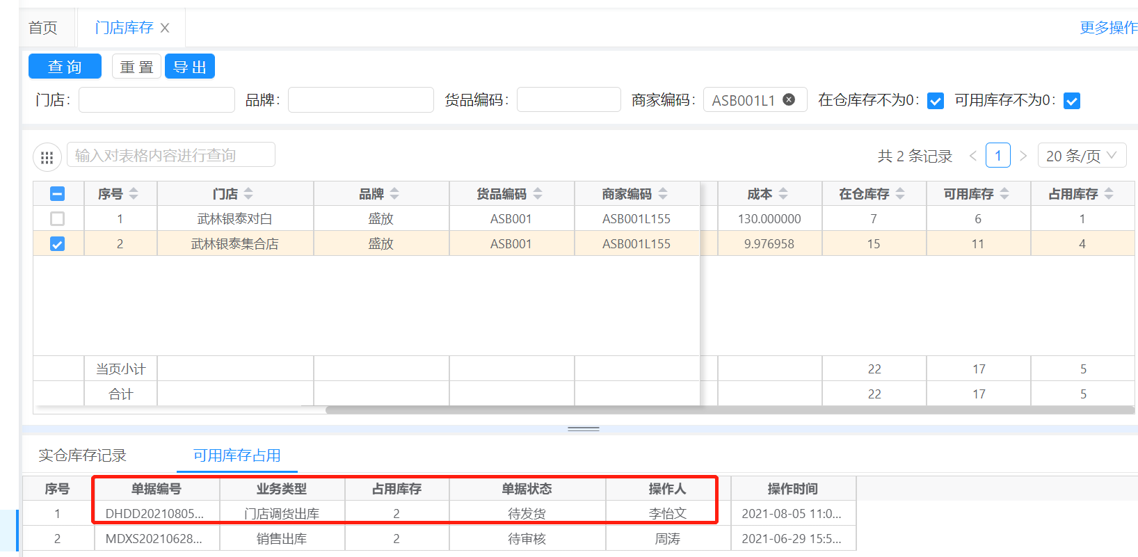 注意:调货单审核后到收货之前,调出仓的库存被占用