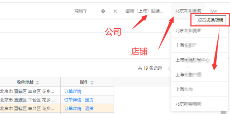 1.1登录账号后,进入本账号权限下某门店主页,如需切换门店,可在右上角进行切换。