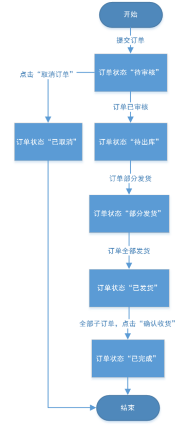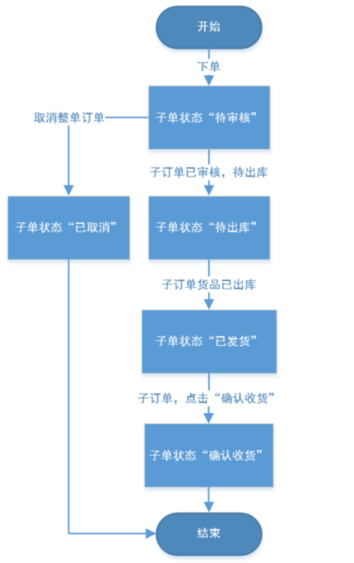 2.OMS客服审核订单后,子订单待出库,子单状态为“待出库”。