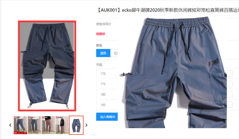 3.在【商品详情】页,将鼠标移入大图区域,可放大查看商品图片。