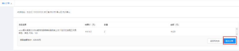 确认好下单信息后,点击“提交订单”按钮,进行下单。