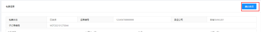 4.对于已发货的订单,点击“确认收货”按钮,子单状态为“已完成”。