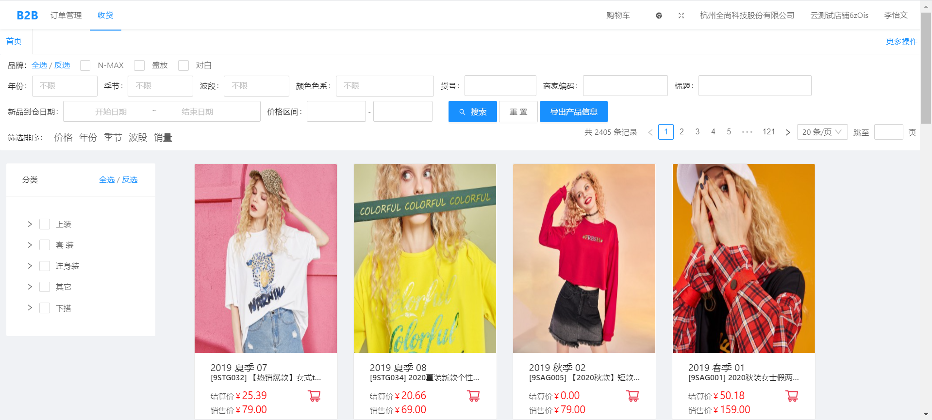 可根据年份、季节、波段、颜色色系、新品到仓日期、价格区间筛选。