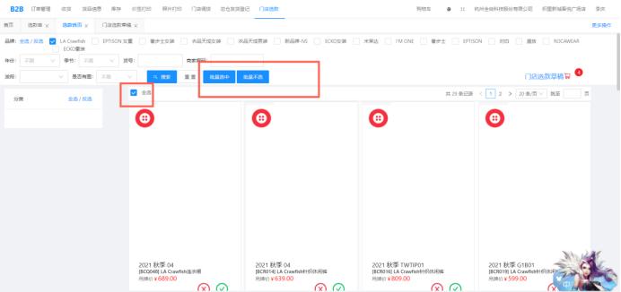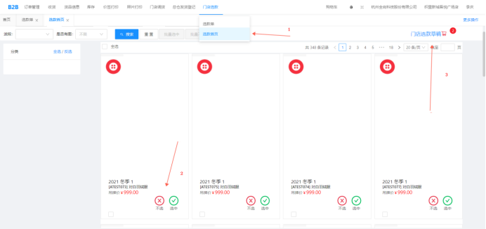 (1)在选款首页,浏览待选的商品,待选的商品为2021年之后,门店未补货未销售的商品;