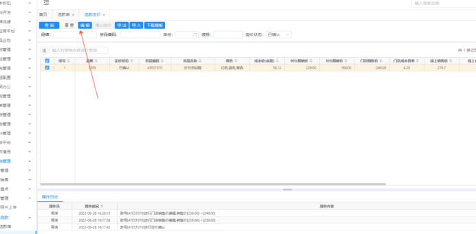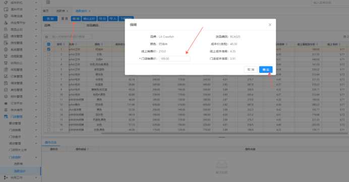 (1)默认进来会看到待确认价格的选款,需要线上运营去确认门店的销售价格;