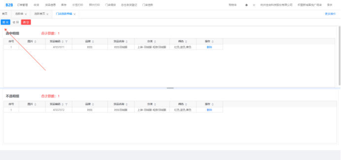 (4)选好后在右上角的门店选款草稿中查看,点击提交,将选中的明细提价即可;