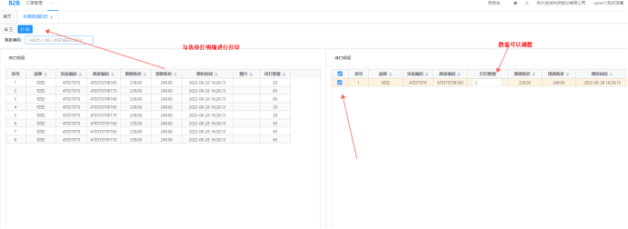 (4)勾选待打明细进行打印,待打=原始未打后,未打明细的数量就会消失;