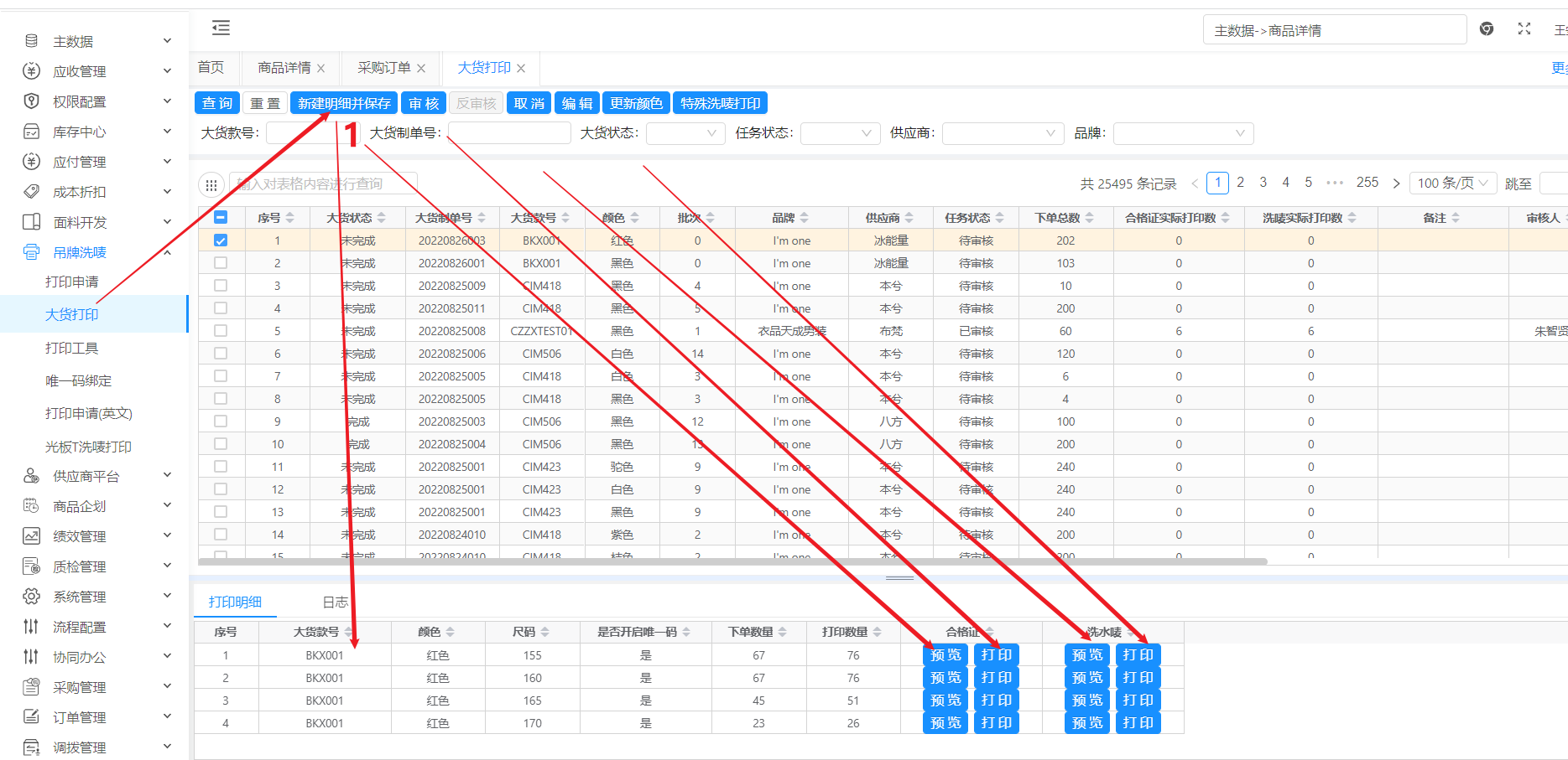 2.1供应商打印,vop端大货打印,主要操作区别是直接打印有二维码,预览无二维码