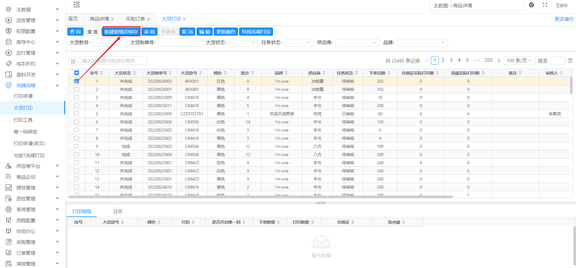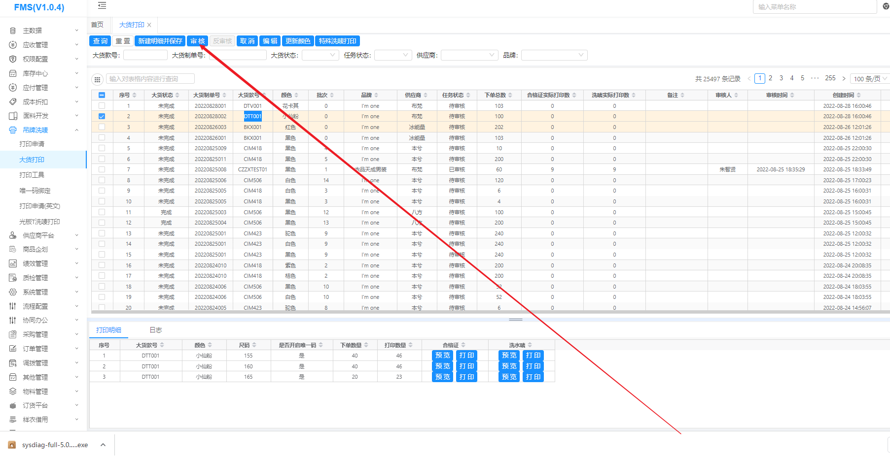 2.4 在FMS中将该货品审核到VOP, 加工厂这边就可以看到该采购单,并进行打印