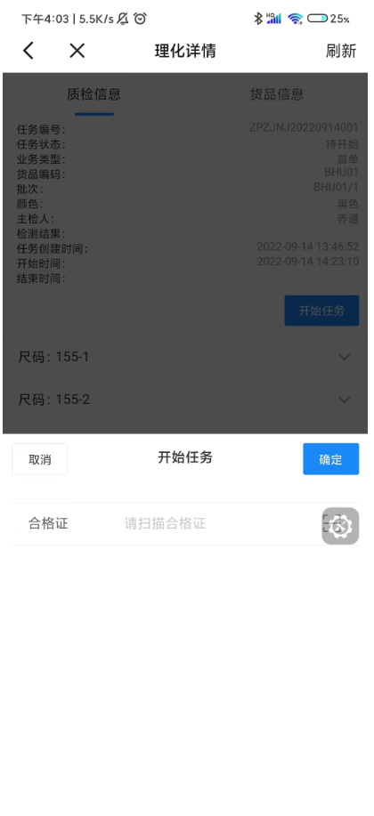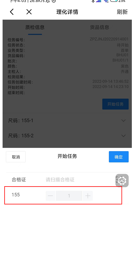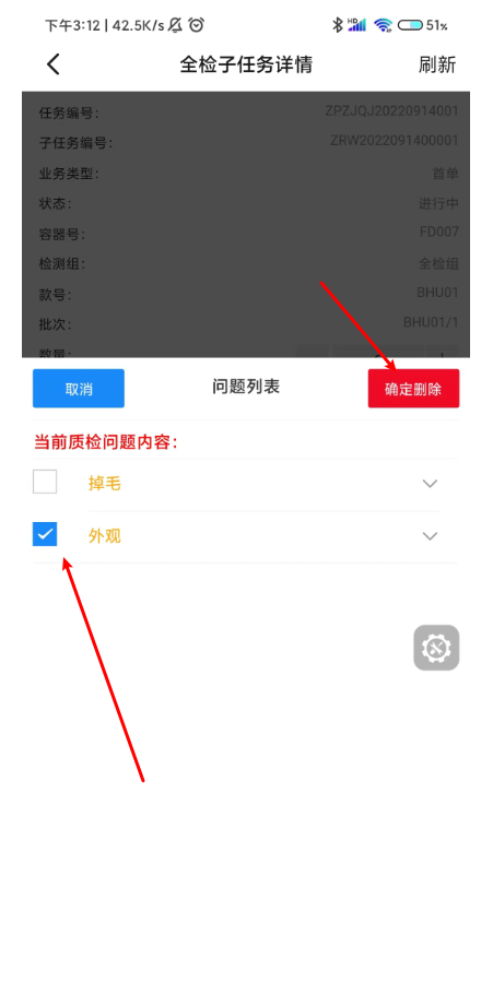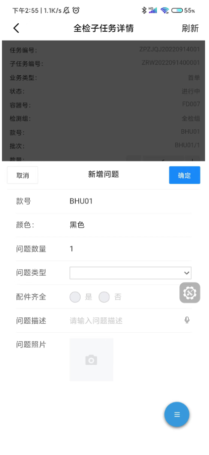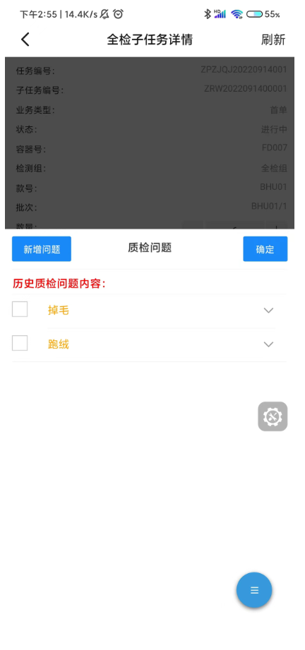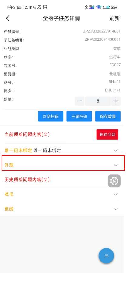 添加的外观问题会展示在当前质检任务列表里