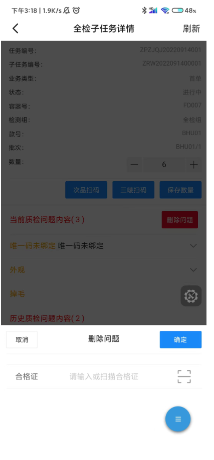 1.4点击删除按钮,扫描合格证