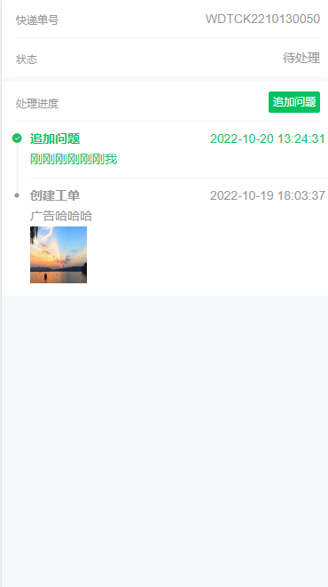 从列表 点击 可以进入查看 工单详情 也可以 追加问题