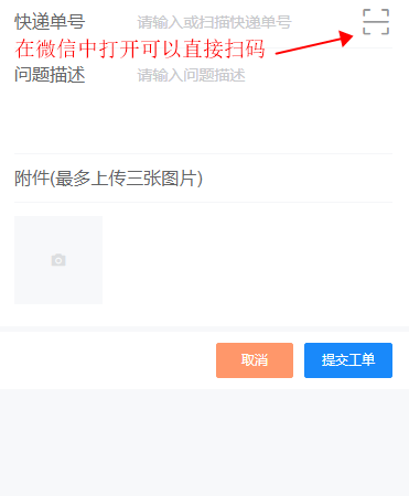 1、目前快递单号仅在微信中支持扫码,因此最好在微信中打开网页