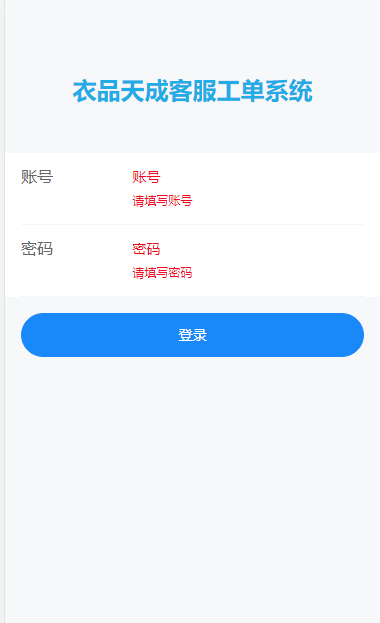 1、登录 衣品天成客服工单系统 http://supplierwx.yptcgroup.com/#/customer-service/login