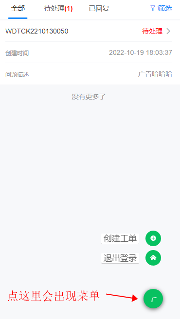 点击 右下角的图标 可以显示菜单 然后 点击创建工单