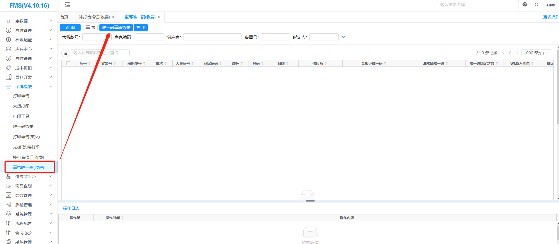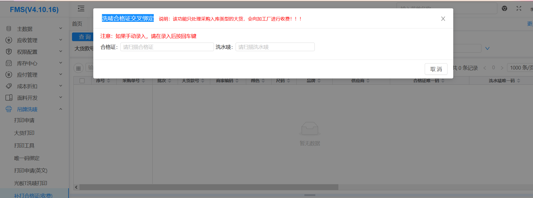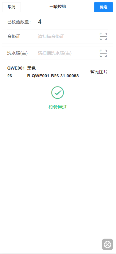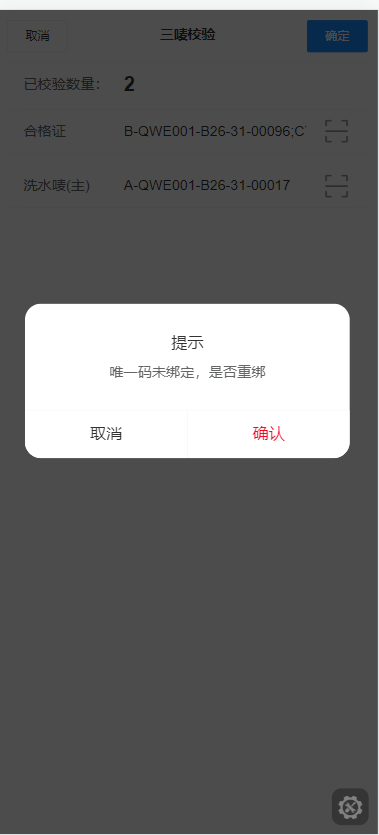 主要应用场景:用于洗唛和合格证交叉绑定、系统会把当前扫描合格证和洗唛对应唯一码解绑,并重新自动对当前扫描唯一码和洗唛进行绑定。