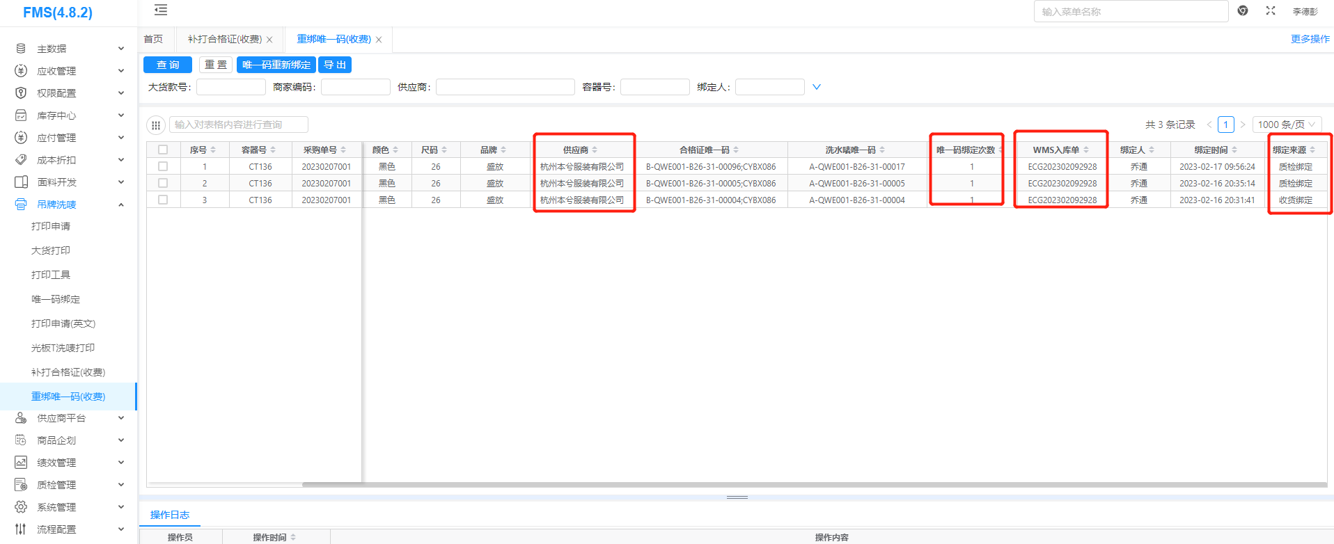 2、质检环节只操作唯一码未绑定的情况。因此质检环节只需要看下面【质检绑定】操作即可。