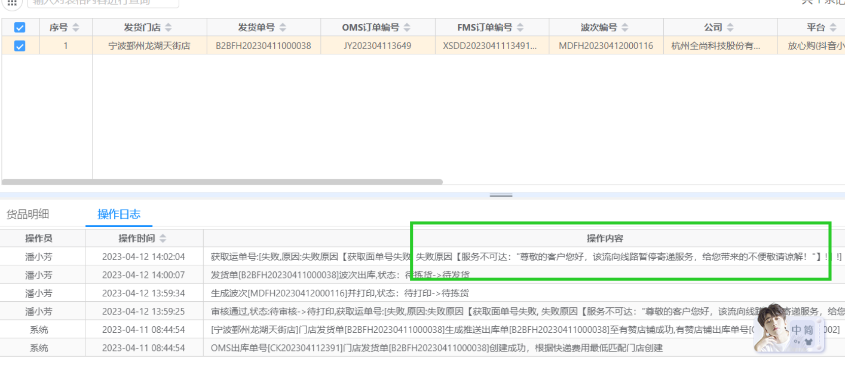 (8)有些条码枪扫了之后不会自动回车,比如扫了波次条码后,下面的发货单没有跳出来,那么扫了之后手动按一下enter键;或者有的门店反馈切一下输入法即可;