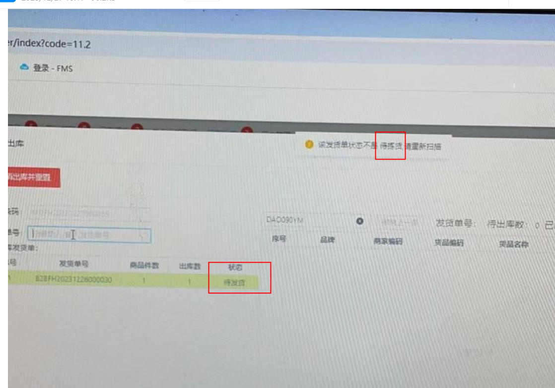 (7)波次出库时提示“该发货单状态不是待拣货”,看下波次出库左下角发货单状态,如果是待发货,就关掉波次出库页面,那是快递面单去操作波次出库;