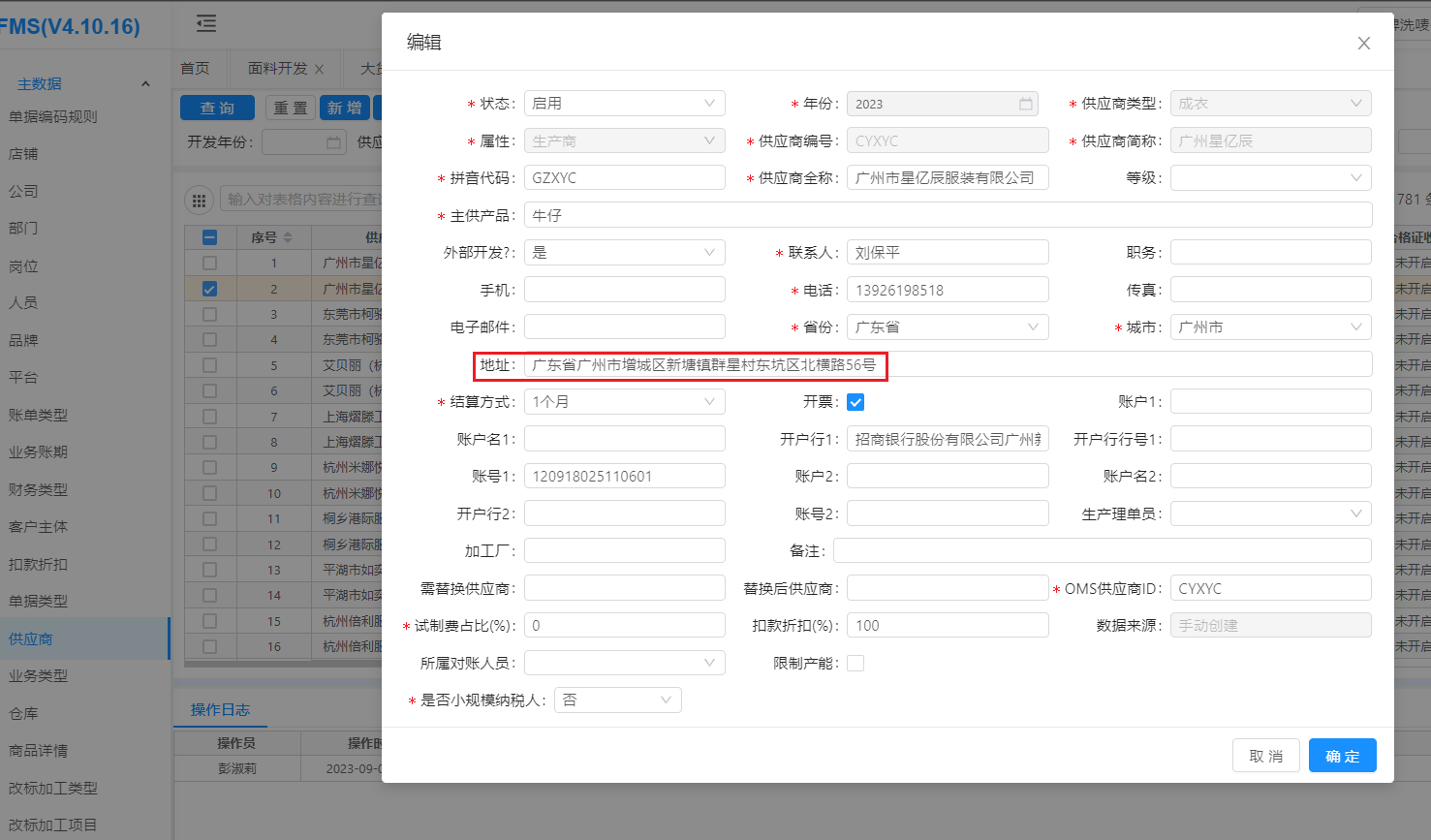 ①找彭淑丽(企划曹玉新的人)修改FMS地址(系统会自动同步SCM)