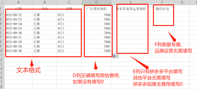 第二步:按照日期、平台、品牌导入预估和实际费用;