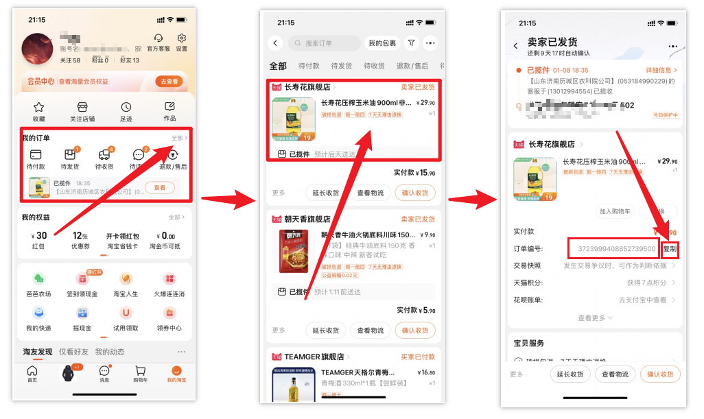4.1查询淘宝原始单号的方法: