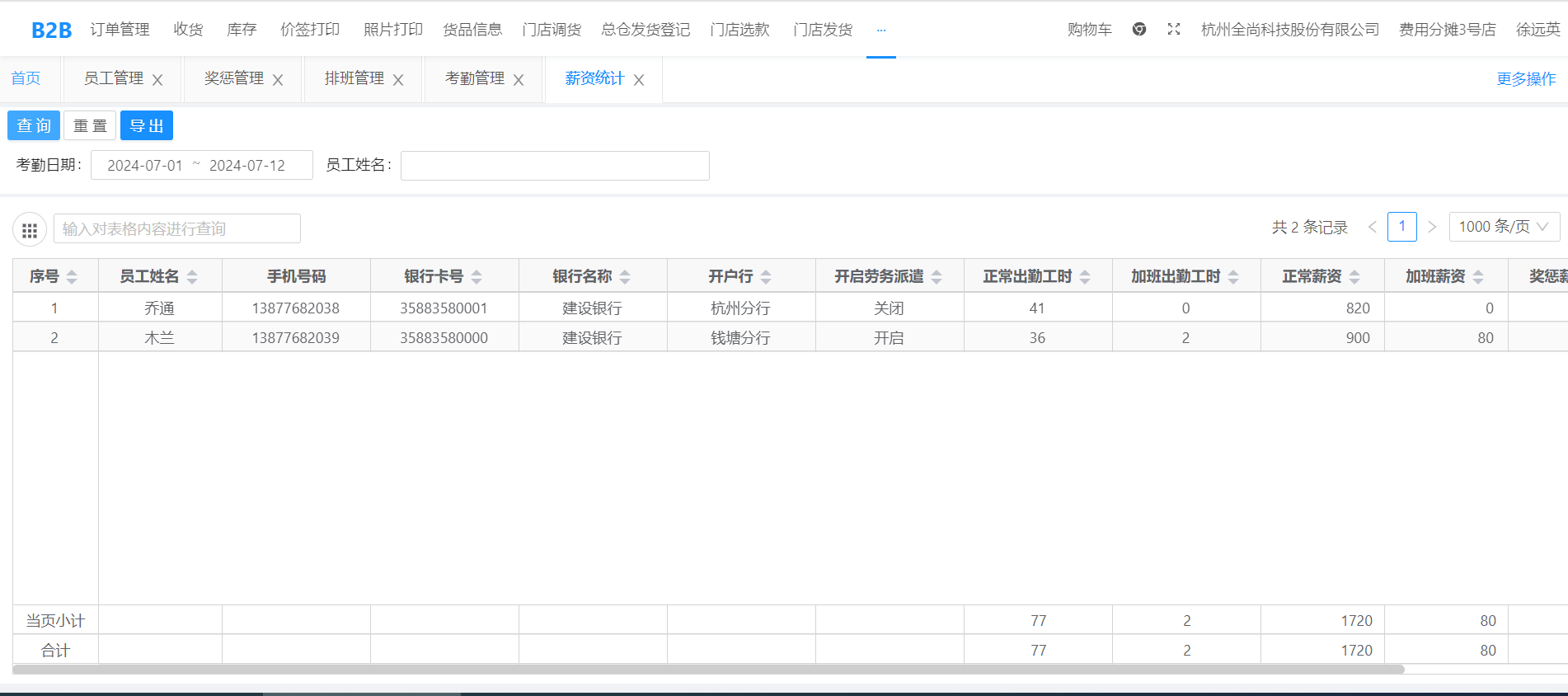 该模块当有门店员工需要进行管理统计计算薪资使用