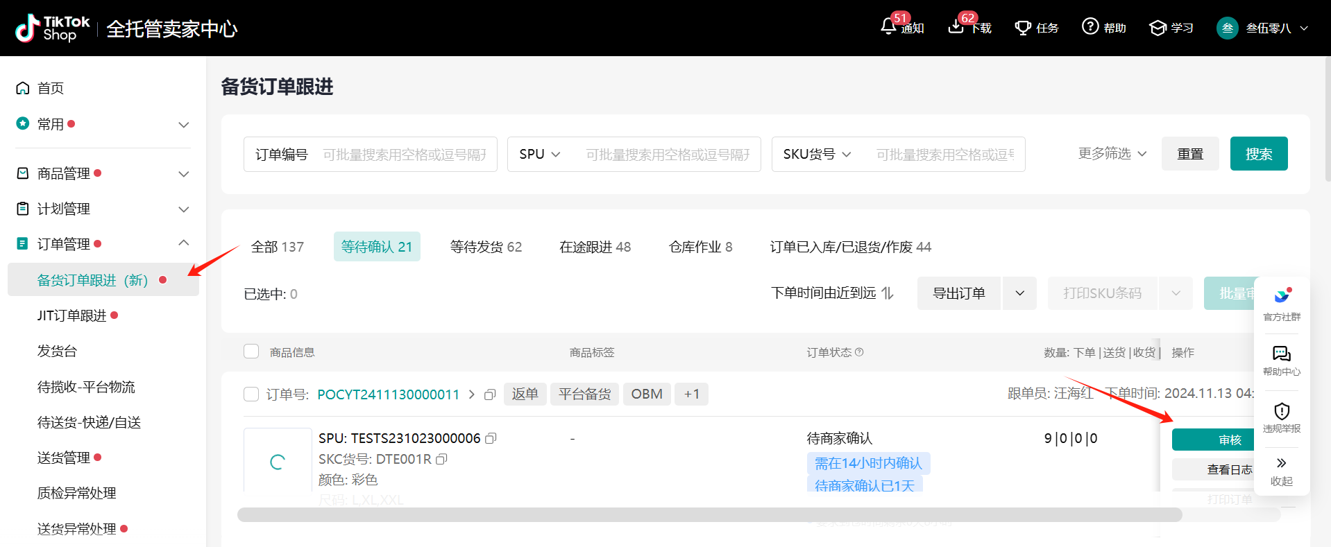 普通备货单需要运营在TK平台审核后才能进入发货流程。