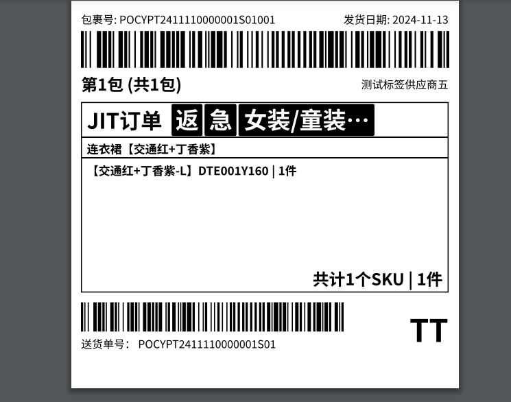 JIT备货单需要打紧急标贴在包裹上,可操作【打印JIT紧急标签】功能将紧急标打印出进行粘贴。