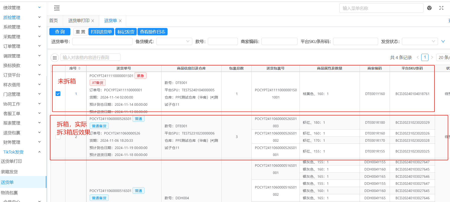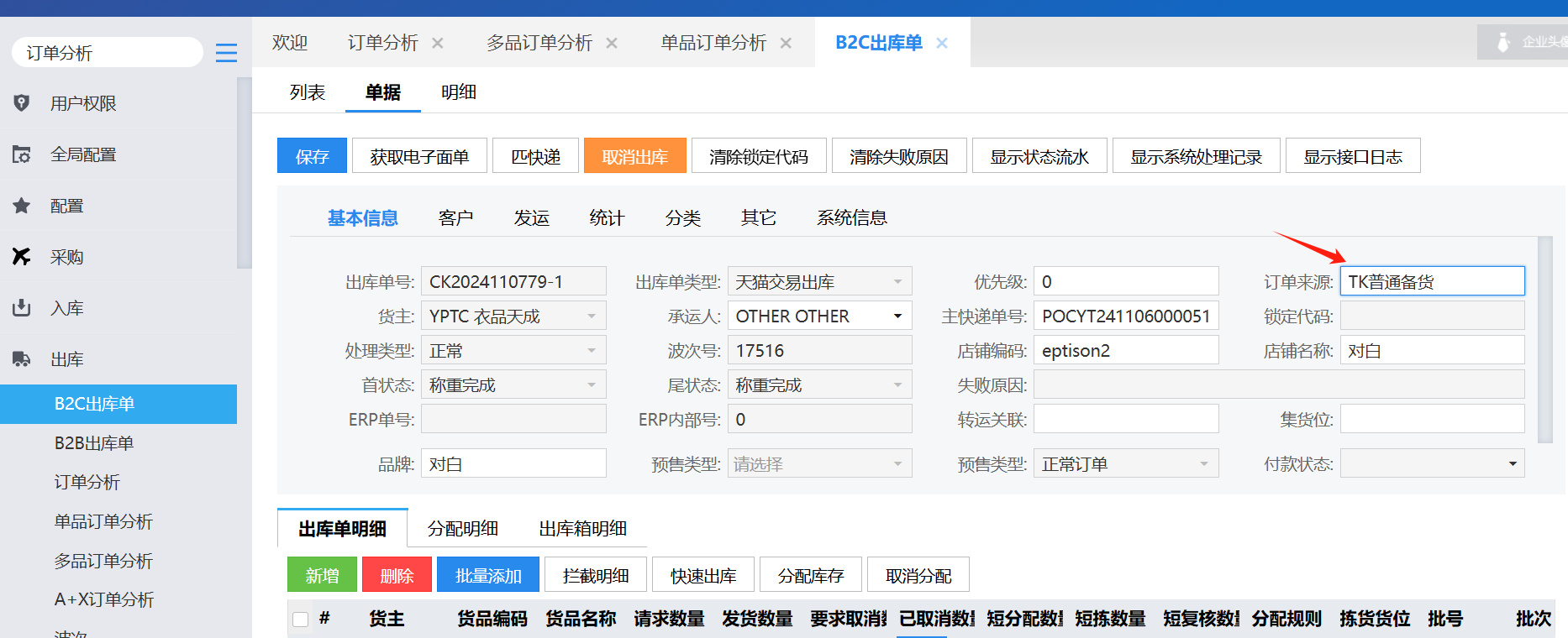 WMS系统会以来源平台区分普通备货单和JIT备货单。
