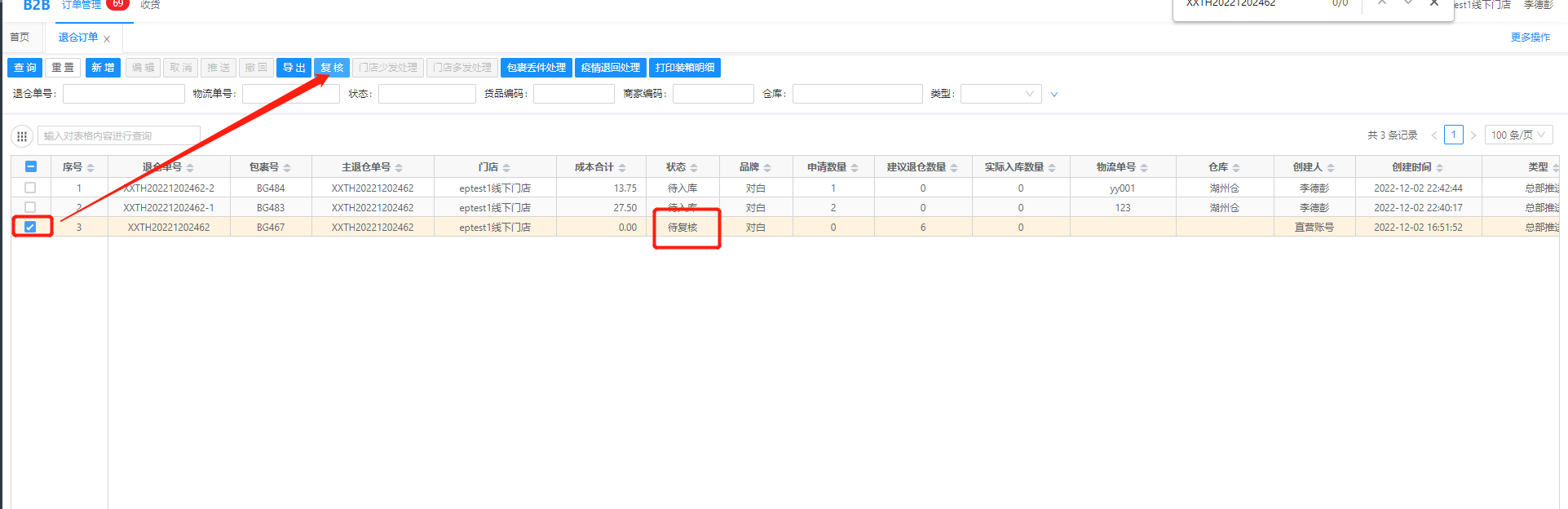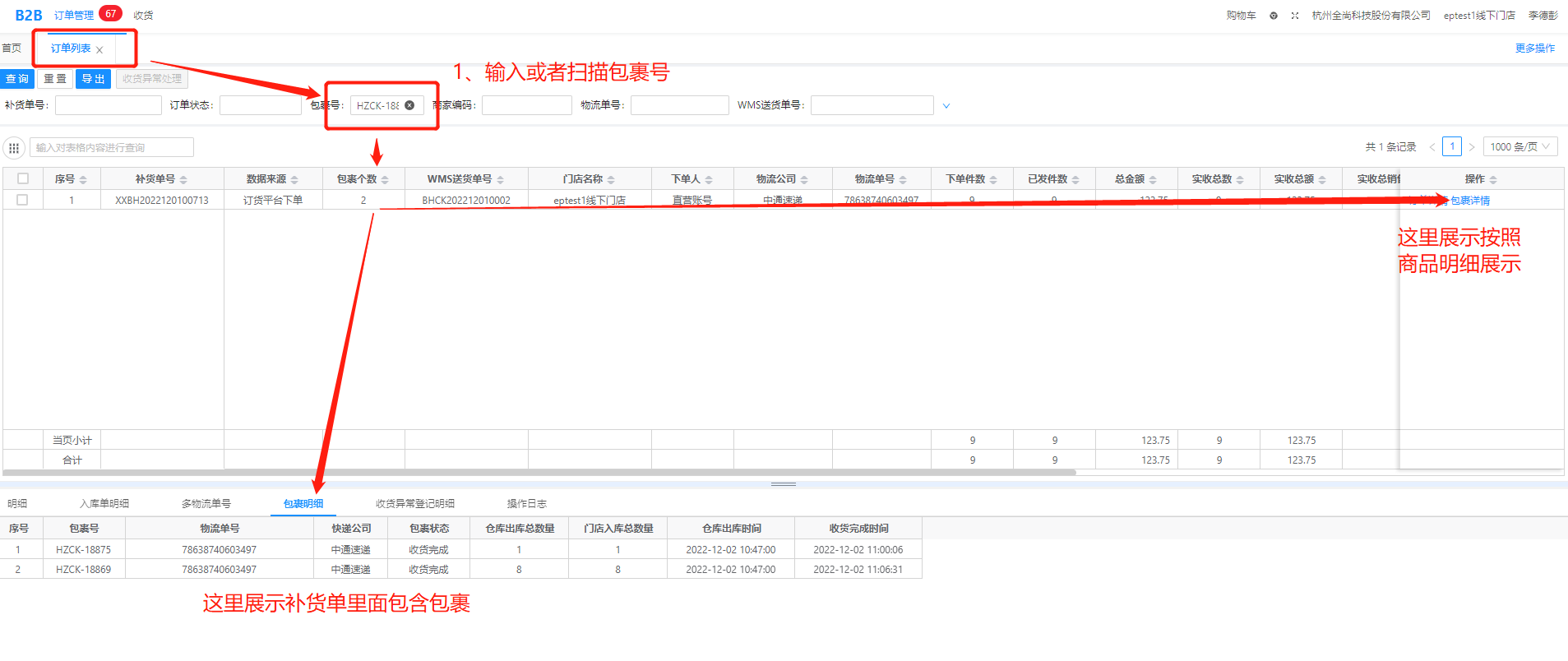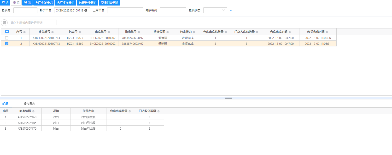 3、查询包裹对应的补货单: