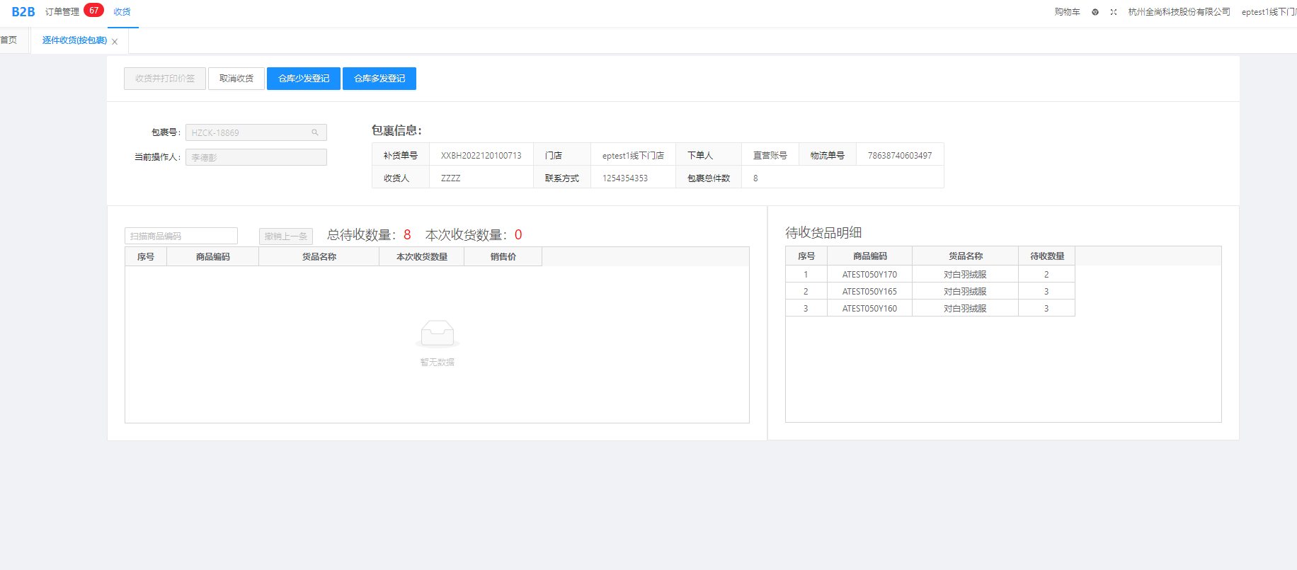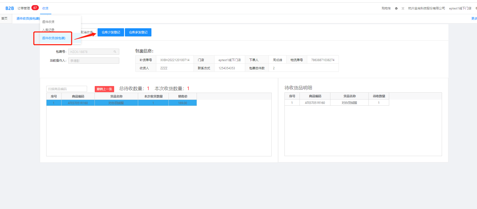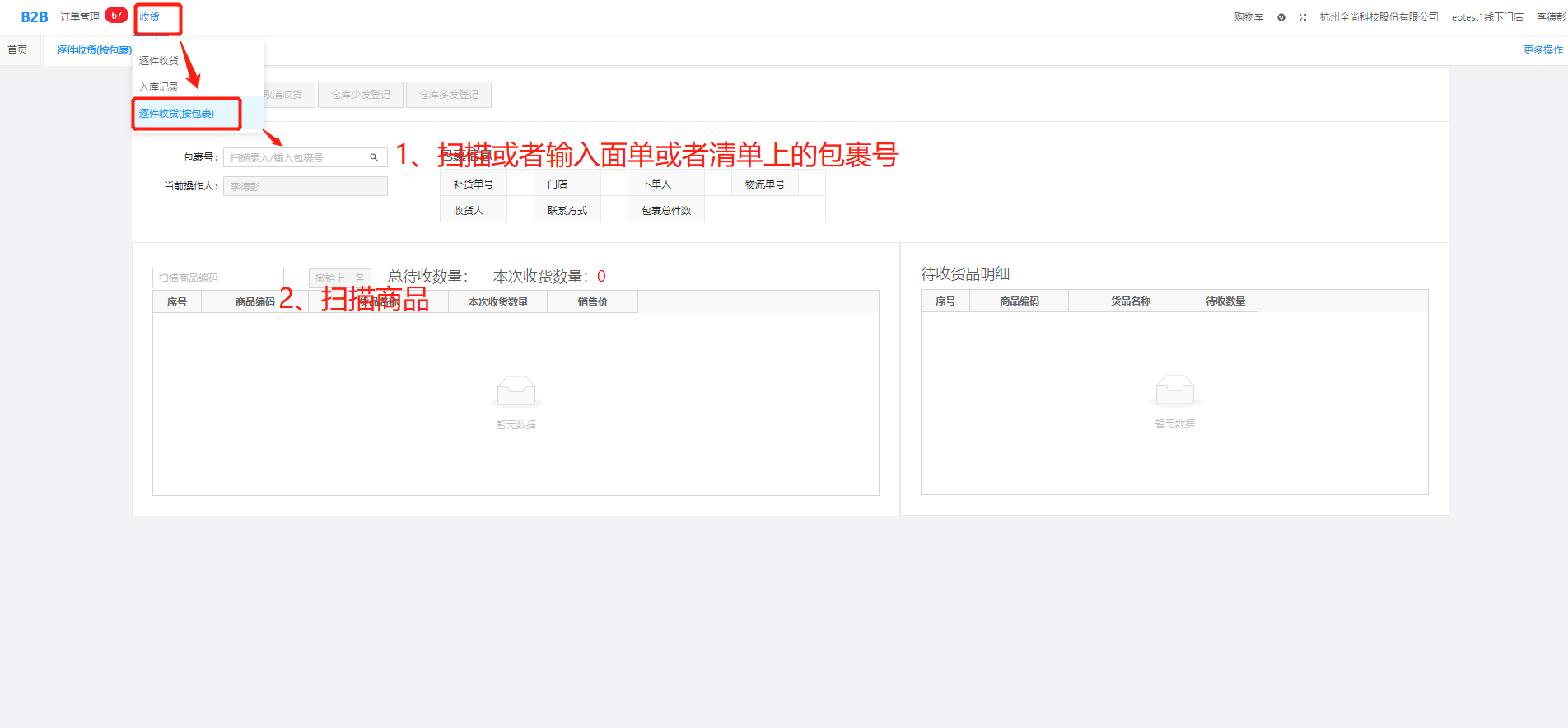 2、按照包裹收货:(按箱收货)