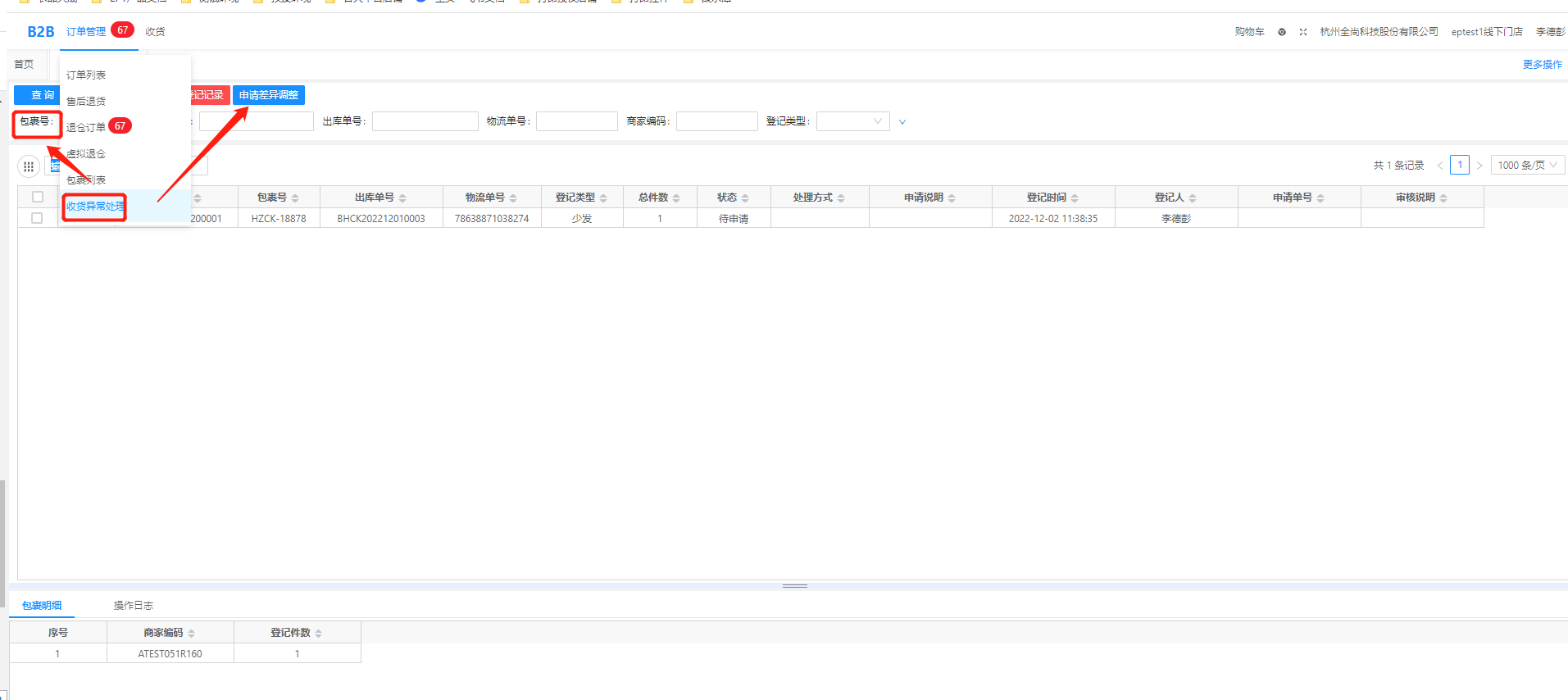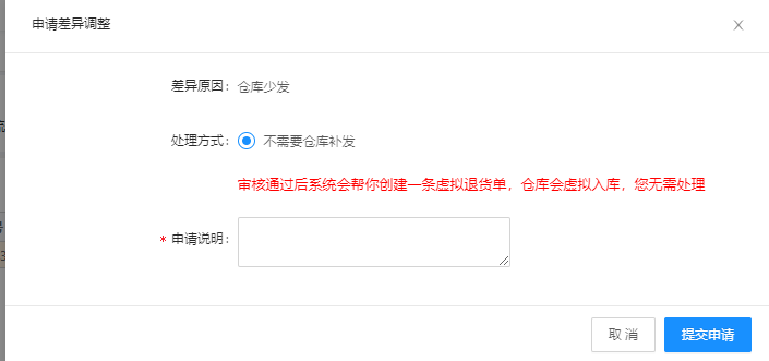 登记成功之后,商品专员要先跟仓库沟通,如果线下处理,直接操作关闭登记记录即可,无需申请差异调整