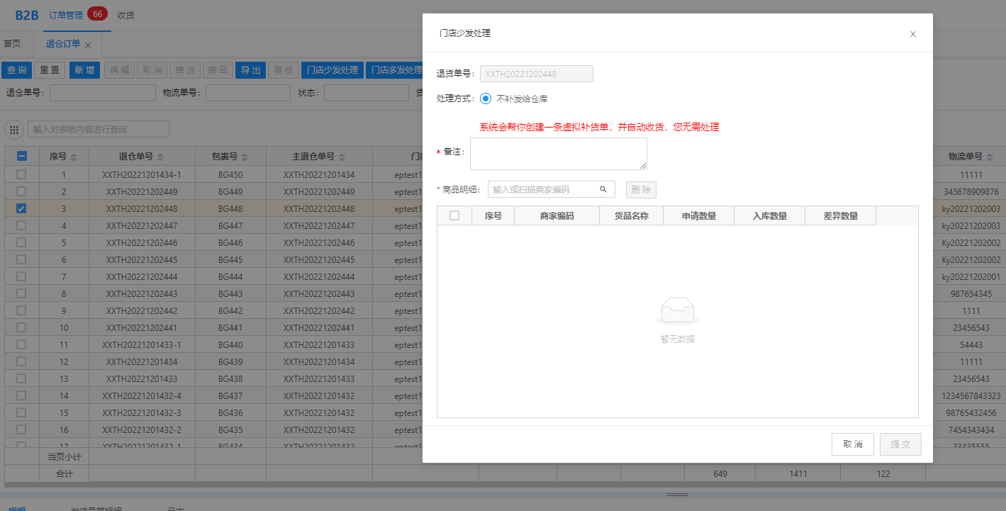 (二) 门店退仓: