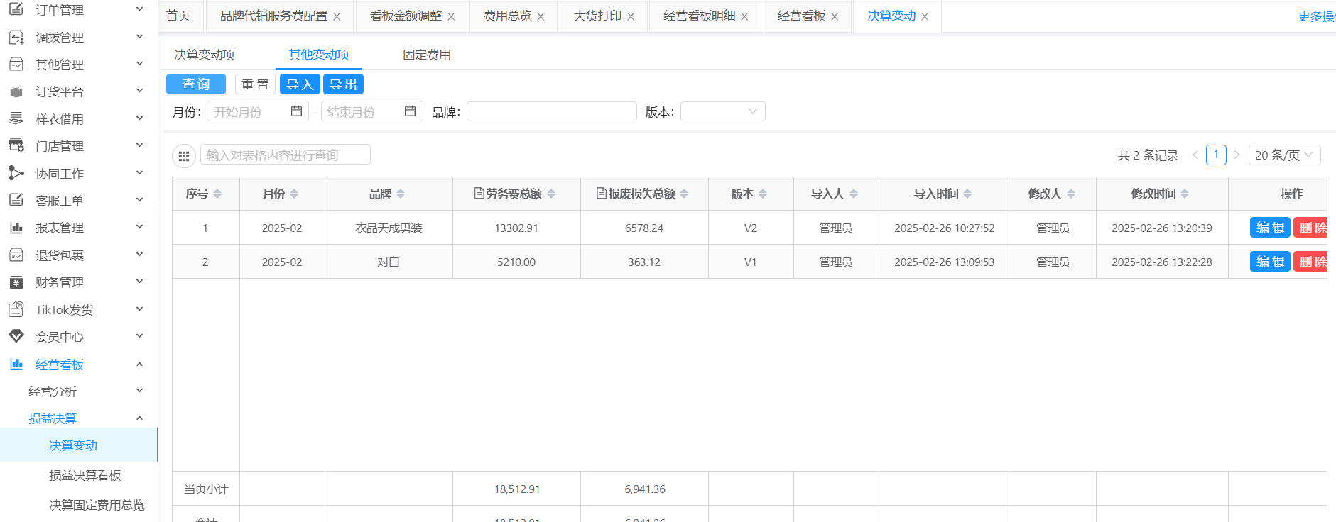 财务使用该功能可进行月度决算变动信息的维护,系统最终输出每月损益决算看板。