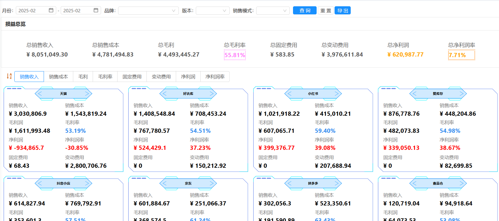 损益决算看板