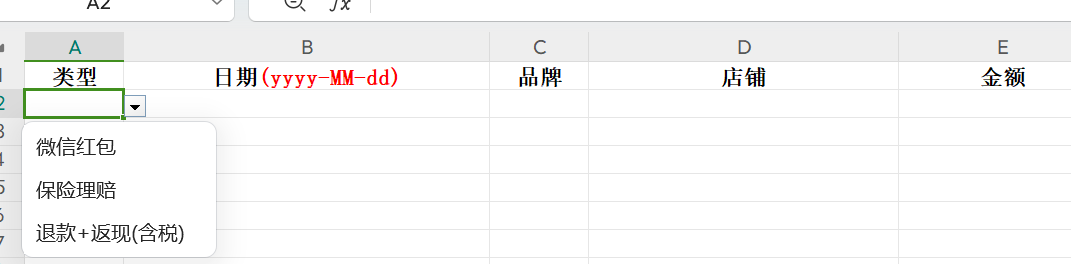 导入功能,导入文件中填写具体日期,系统会自动检测同品牌、店铺、类型、日期的数据,如果存在相同数据进行金额更新,不存在进行新增。