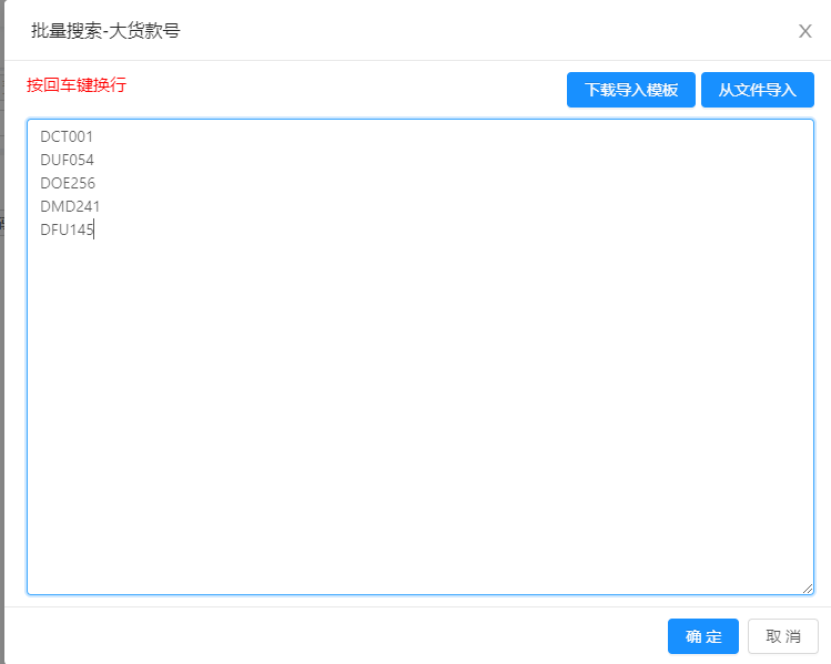 ①直接输入大货款号,每个款号一个行 ②exce导入