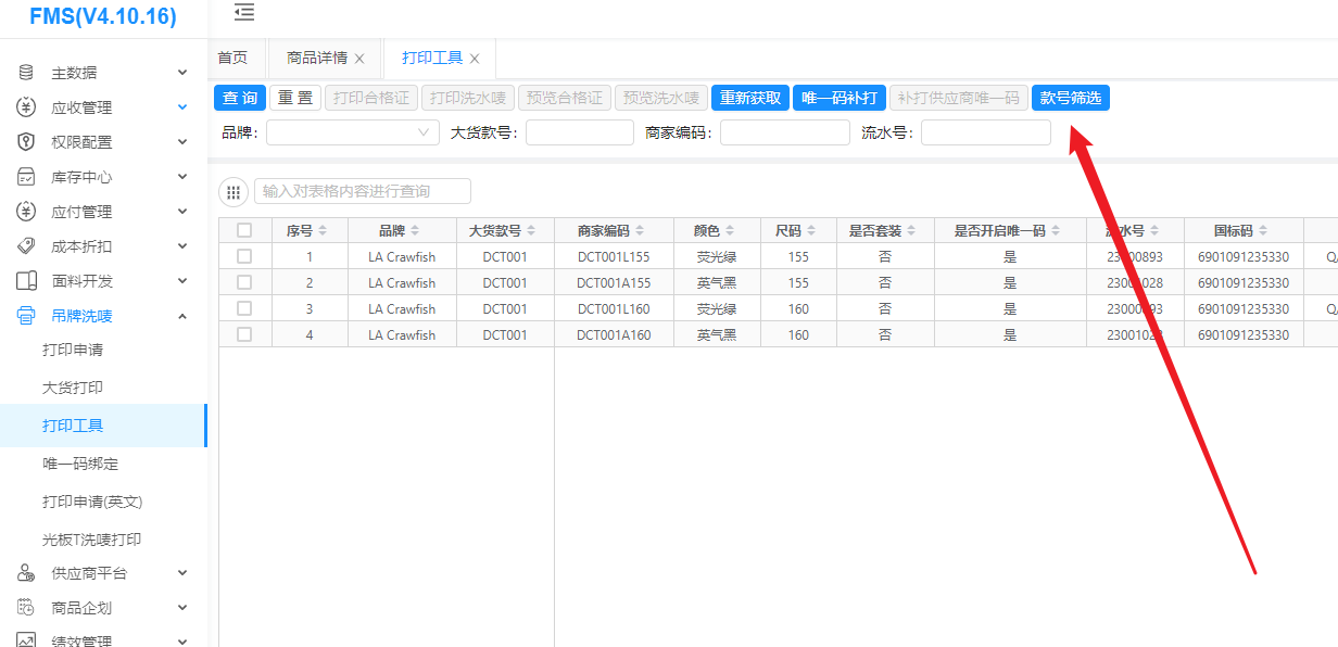 3.2 如果想打印指定多款的大货款号: