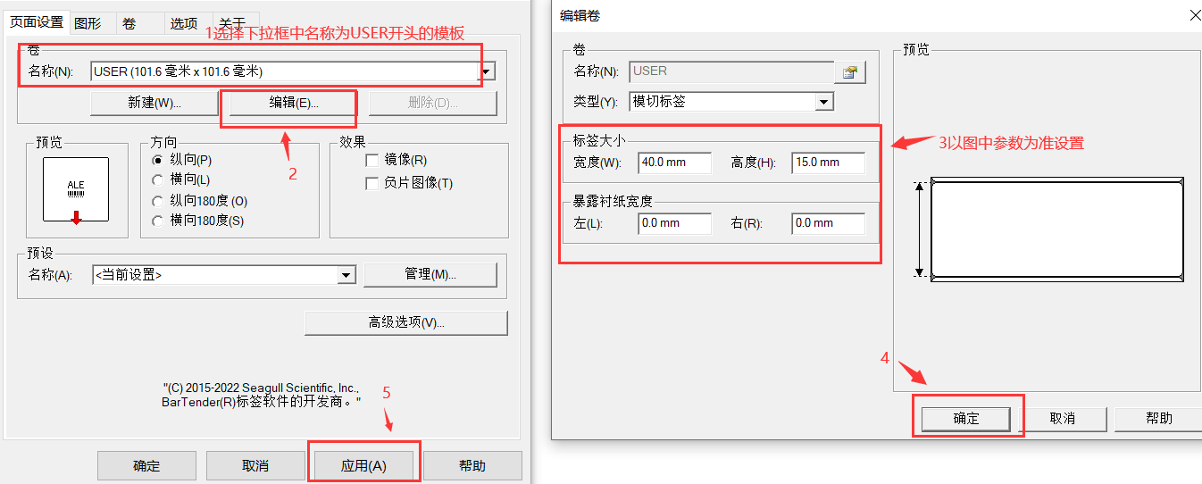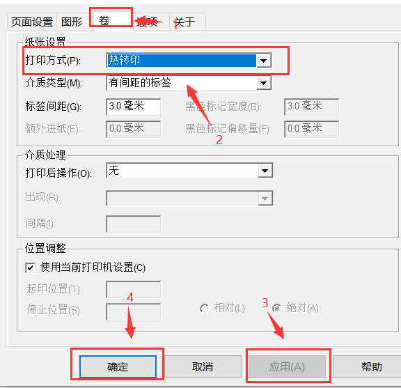 2.安装完成后需对打印机进行以下参数设置,请按照图中指示操作