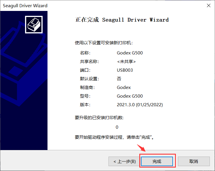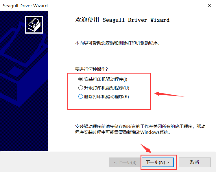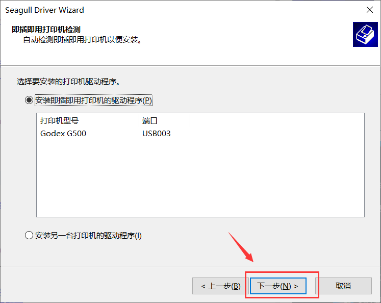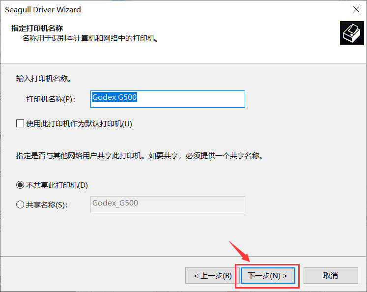 1.下载完毕后左键双击打开godex安装包,跳出”windows打印机驱动程序”弹窗,根据图中指示进行操作即可完成安装