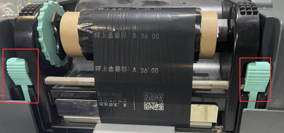 4. 将标签纸卷组合向上拿起取出后,更换相应标签纸卷(注意不要将两侧压片按压过紧,这会导致纸卷打印时无法转动)